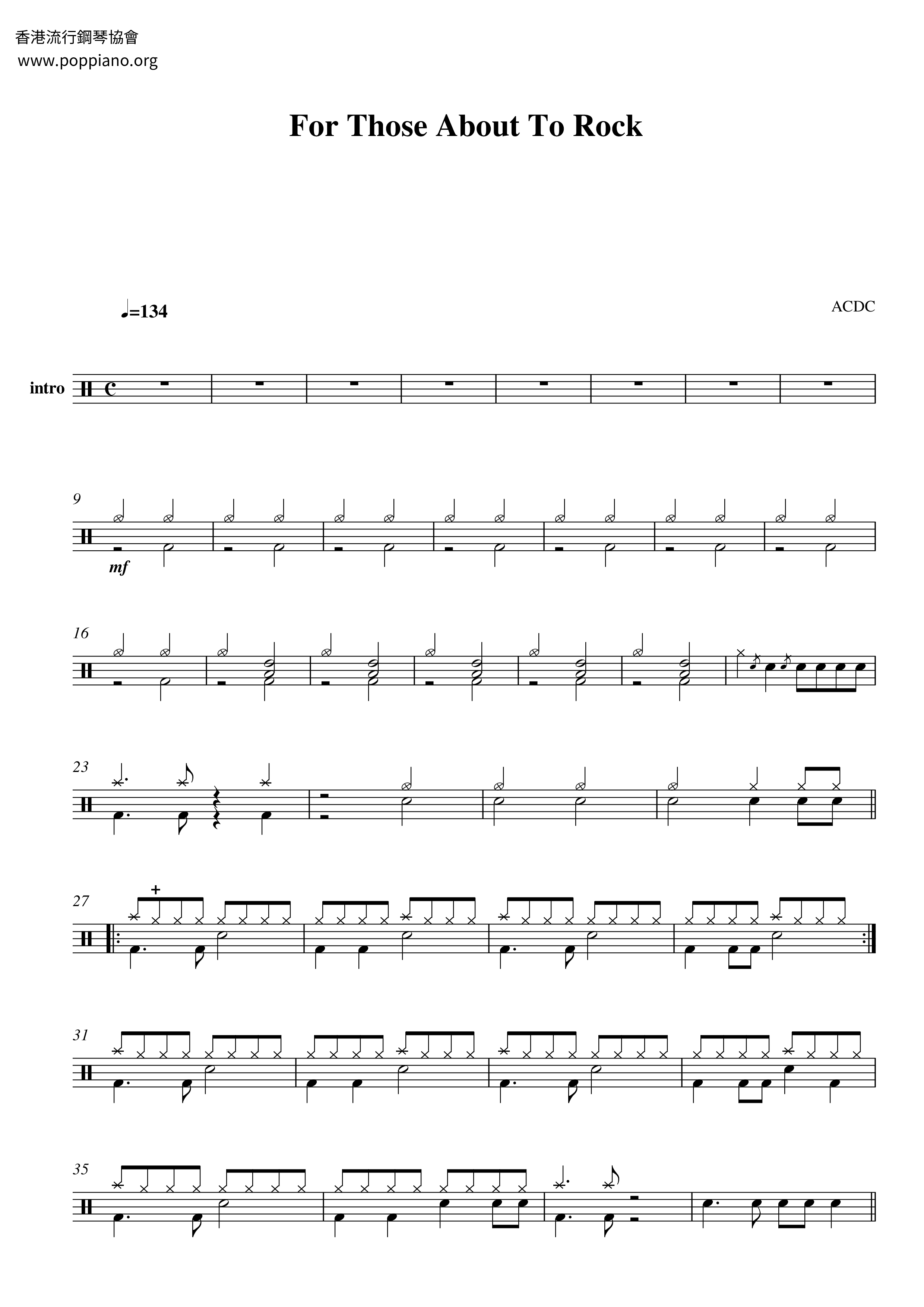 Ac Dc For Those About To Rock We Salute You Drum Tab Pdf Free Score Download